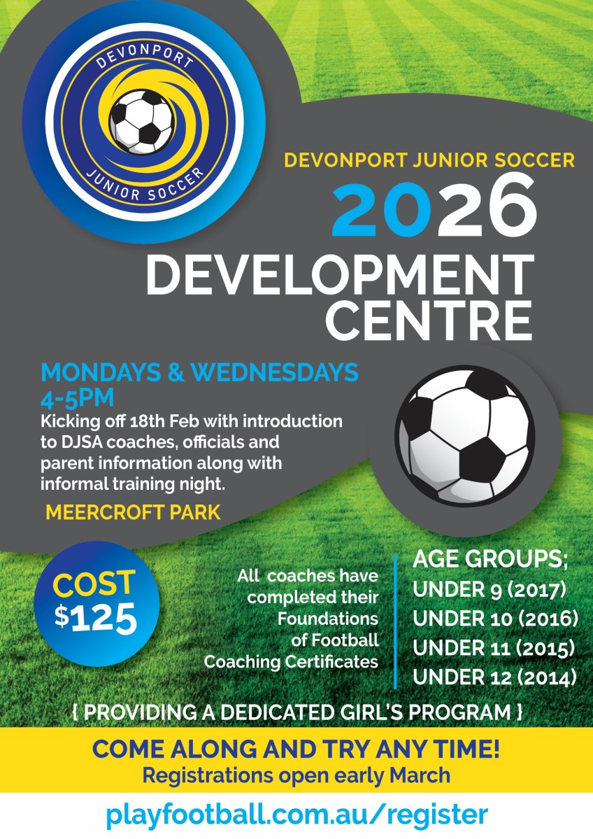 Devonport Junior Soccer’s Development Centre is back for 2026!Weekly