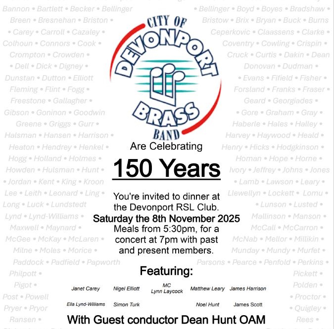 City of Devonport Brass band – 150th Anniversary Celebrations