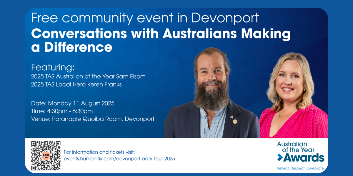 Tasmanians are warmly invited to a powerful evening of storytelling, inspiration and connection at Real Stories, Real Change – a free community event as part of the 2025 Australian of the Year Awards Tour of Honour.
