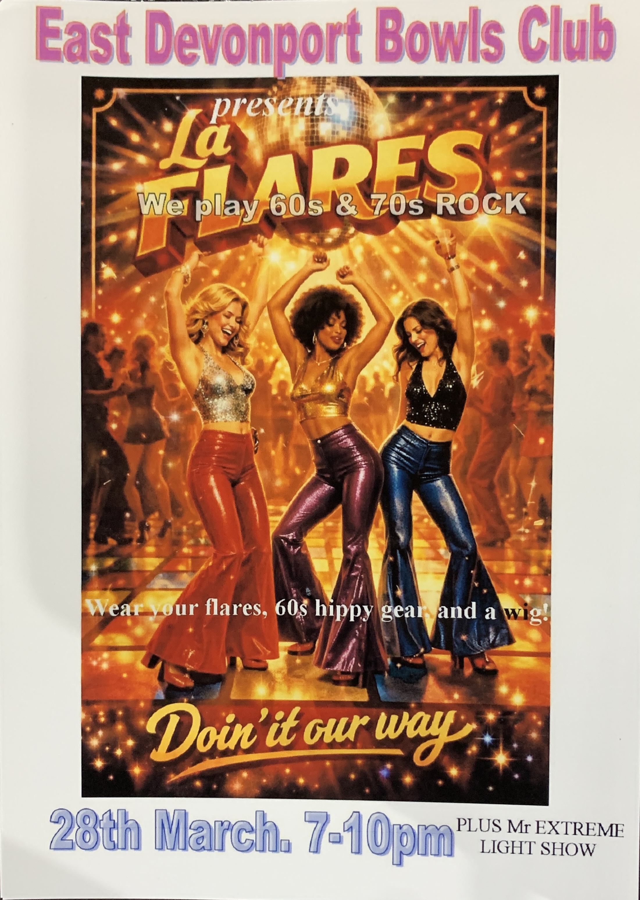 La FLARES FIRST PERFORMANCE at East Devonport Bowls Club 28 the March, 7-10pm