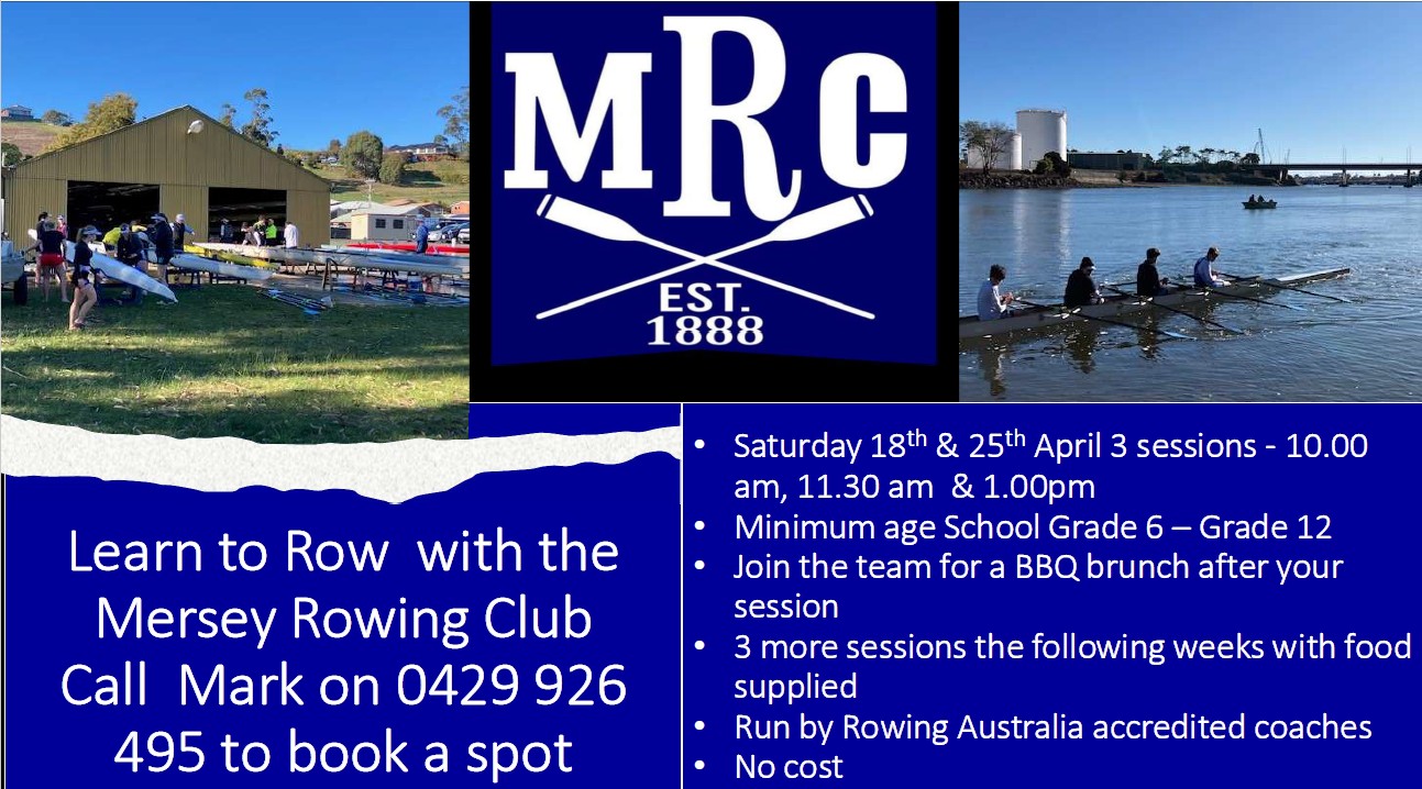 Mersey Rowing Club are again running some Introduction to Rowing sessions on 18th & 25th April. Session times 10.00am, 11.30am & 1.00pm. Open to all school students Grade 6 – 12.