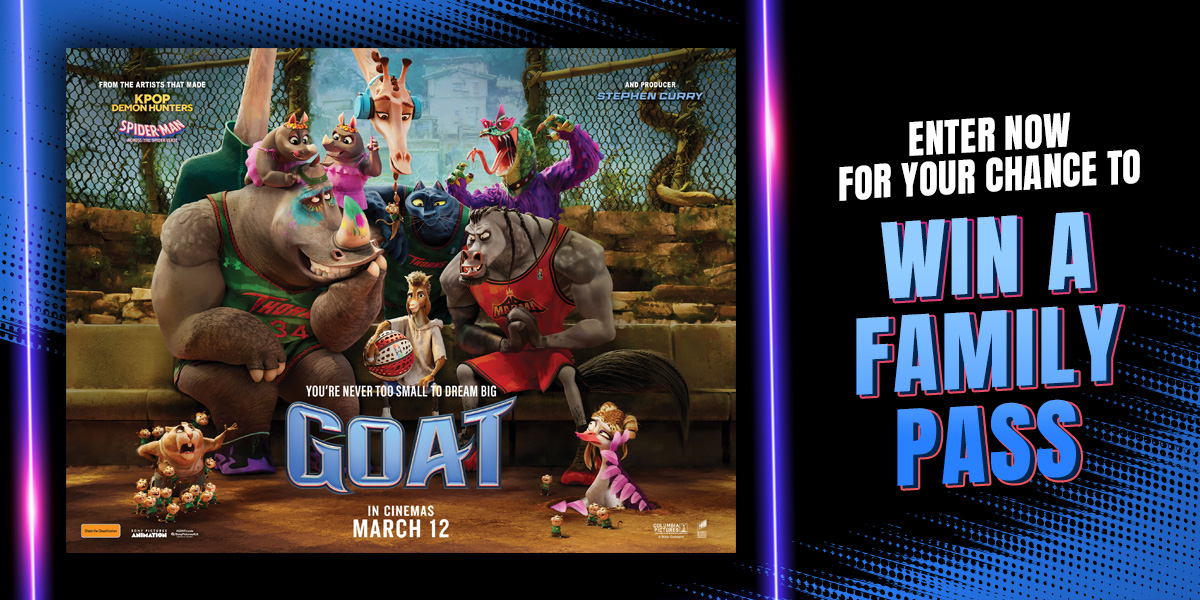 from producer and NBA legend, Steph Curry, comes GOAT. An animated action-comedy set in an all-animal world, proving smalls can ball! In cinemas March 12..